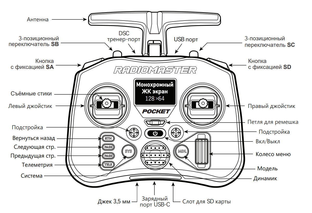 Функции квадрокоптера привязаны к конкретным номерам каналов. При необходимости вы можете переназначить тумблеры для управления удобным образом.